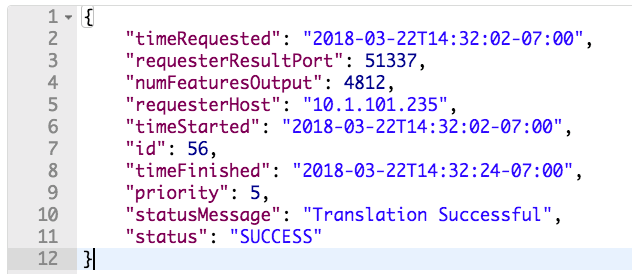 The jobs page provides a more detailed description of the job. Here, we can find the job log. The job log provides information such as, what features were written, how many features are written, and what engine was used to complete the job.
