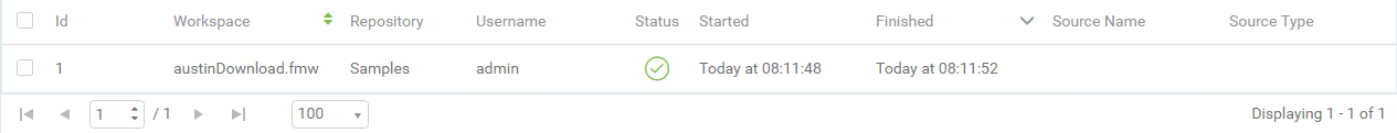 Now that the job has been submitted, you can view it in FME Server. Go to your FME Server and log in as the admin user and click Jobs > Completed page on the left-hand sidebar.