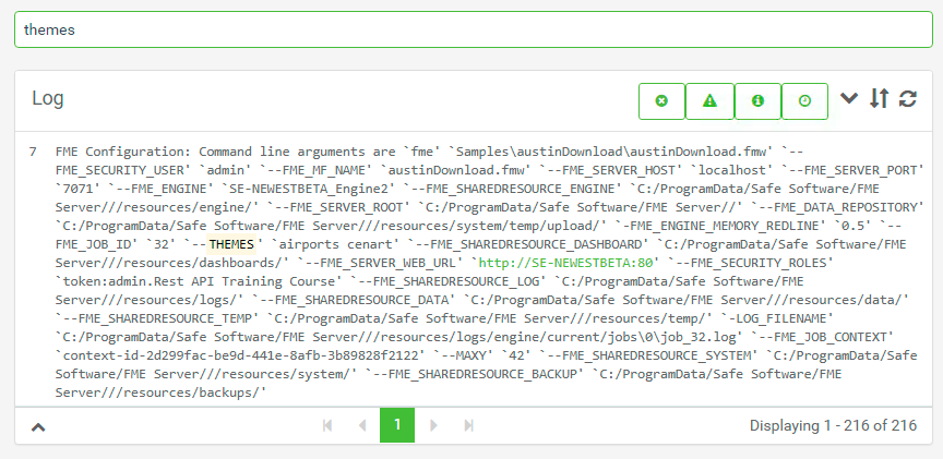 Open your FME Server, then click on the left-hand panel of the Server where it says, Jobs. Click the latest austinDownload job. Scroll down to find the job log.