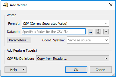 Change the CSV File Definition to Copy From Reader... Select OK to add the writer to the canvas.