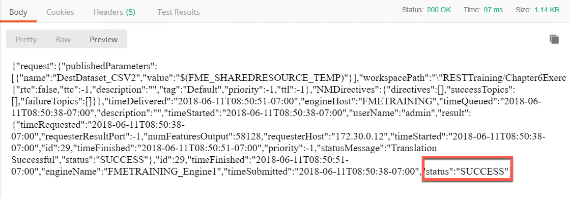 | Workspace | C:\FMEData2019\Resources\RESTAPI\Chapter6Exercise12.fmw |