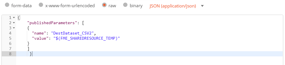 The source dataset also has to be in a location that FME Server has access to. We are specifying a folder here that will be created through the REST API.