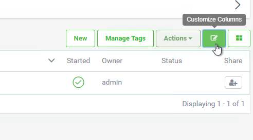 The REST Call requires the Automation Id but by default it is hidden in the FME Server UI. To find the Id go to the Automations Manage page. In the top right hand corner of the page click Customize Columns.