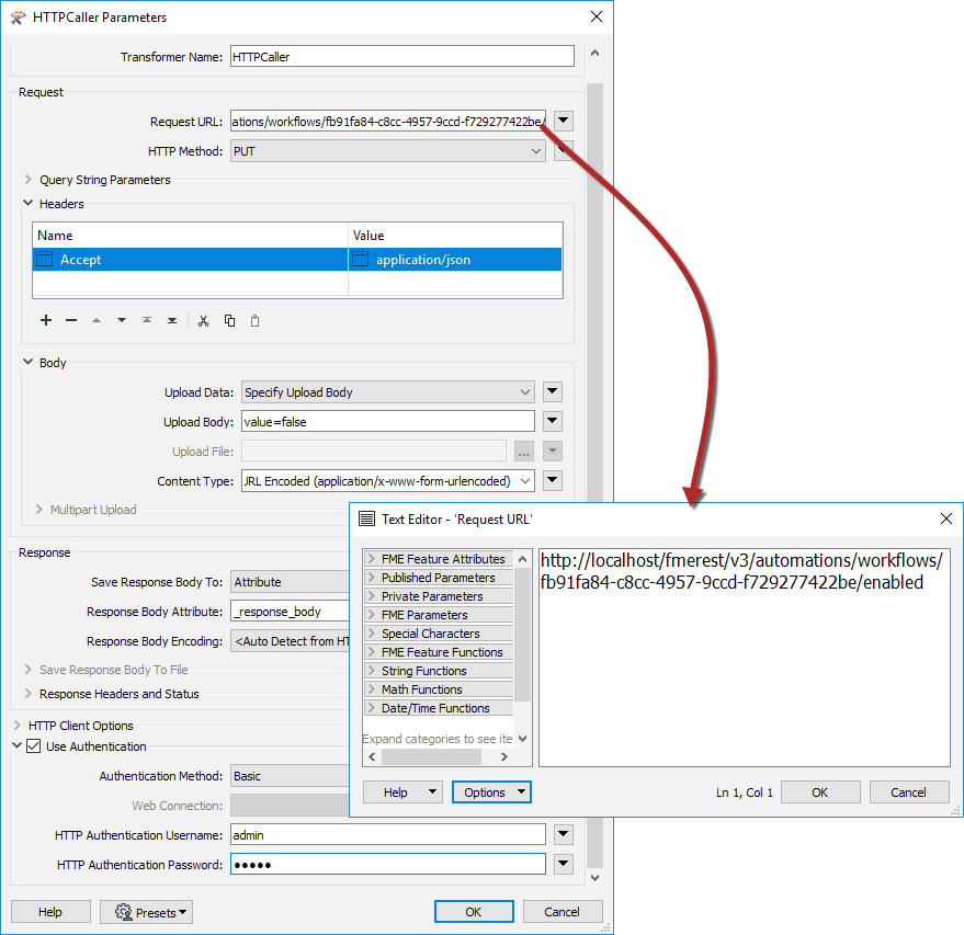 | PUT | https://localhost:8443/fmerest/v3/automations/workflows/<yourAutomationId>/enabled |