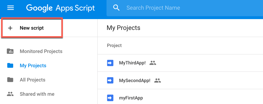 Simply, go to https://script.google.com/home and click New Script to create your web application.