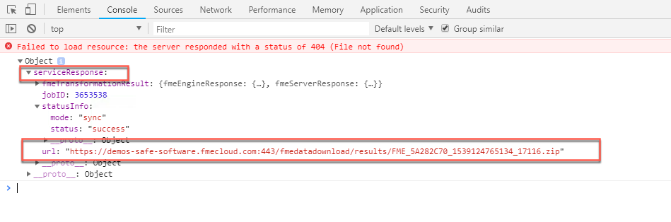 In the Console, we can see the JSON and the structure of the response returned. The URL is nested json, then the serviceResponse.