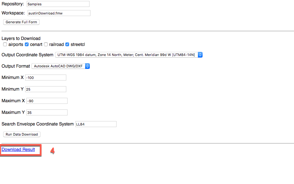After this, you will receive a link to download the resulting files. Please be patient because this may require a minute to complete depending on FME Server.