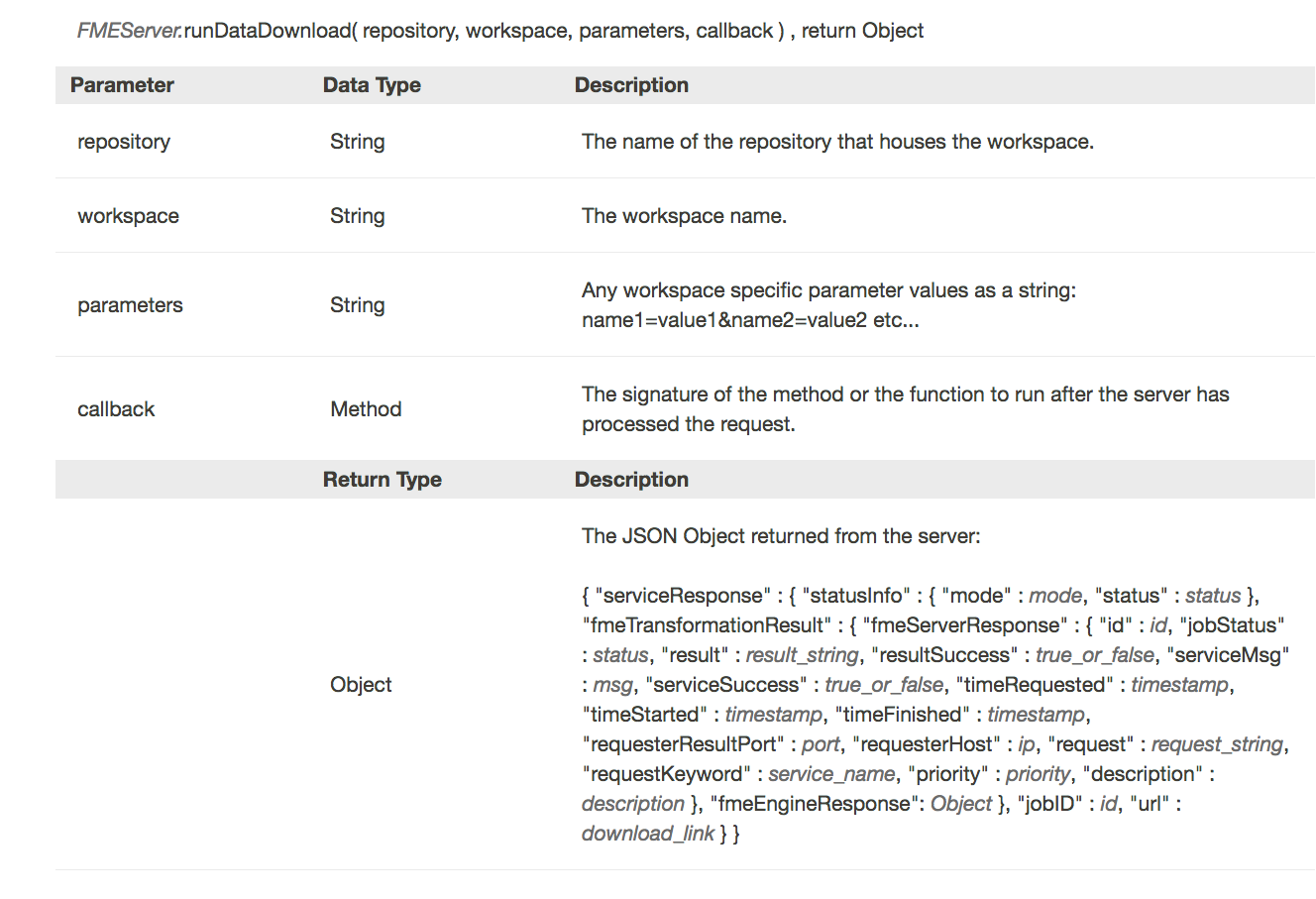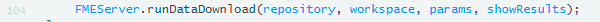 We have not uploaded the workspace to FME Server so this will not currently work but let's discuss how we could recreate these functions. Our goal with the processClip function is to set the proper parameters so we can later use the runDataDownload function.