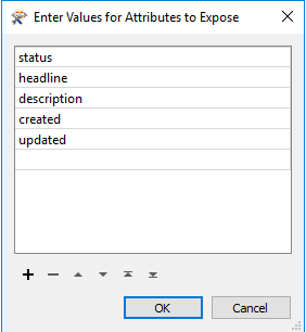In the Attributes to Expose Section click on the ... and write the following attributes: status, headline, description, created, and updated.