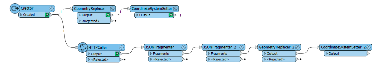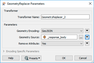 The GeometeryReplacer is an amazing transformer. It can read the JSON from the Response Body and will automatically create the geometry associated with it.
