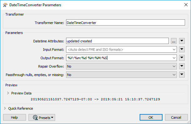 Add a DateTimeConverter and attach it to the OUTPUT port of the NoFeaturesTester. The DateTimeConverter is used to update the time and date, so it is more readable for the user.