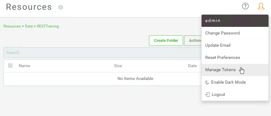 Log into FME Server. Click on the User Icon and select Manage Tokens.