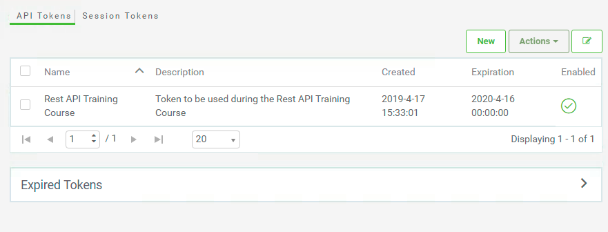 Click on the token we created earlier in the course. This should be called Rest API Training Course.