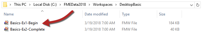 | Start Workspace | C:\FMEData2018\Workspaces\DesktopBasic\Basics-Ex1-Begin.fmw |