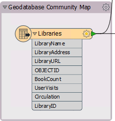 This area is where we read data, in this case, a table of libraries from an Esri Geodatabase. It is the "E" (Extract) part of ETL.