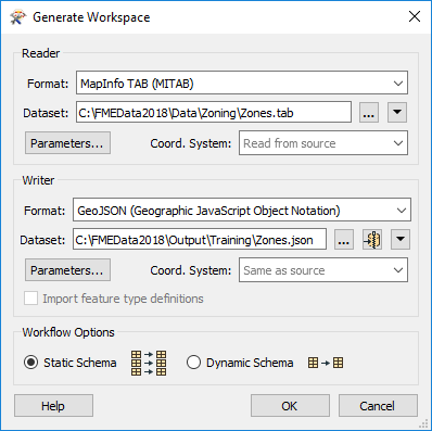 | Demonstrates | Basic workspace creation with FME Workbench |