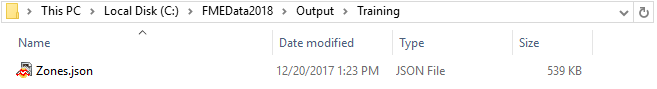 | Writer Dataset | C:\FMEData2018\Output\Training\Zones.json |