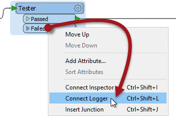To do this, right-click on the Tester Failed port and choose the option Connect Logger: