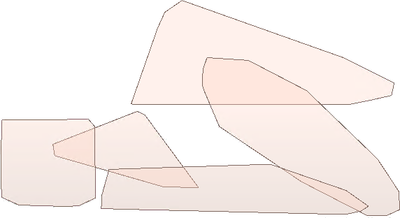 The overlaps are now separate features, but we do not yet know to which area they should be assigned. It should be the one with most addresses; for example, if an overlap contains 31 addresses from group one, and 52 addresses from group two, then it should be assigned to the group two polygon.
