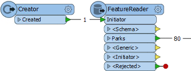 The Creator creates a single feature that triggers the FeatureReader to read a dataset of park features. If for some reason the Creator created ten features, then the data would be read ten times, resulting in 800 output features!