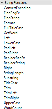 Notice the menu on the left-hand side. Existing attributes are listed here and were added into the string by double-clicking them. Also, notice the other menu options. Maybe the most important for text are the String Functions:
