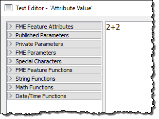 One other item in the menu of both text and arithmetic editors is FME Feature Functions: