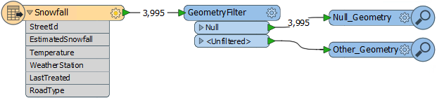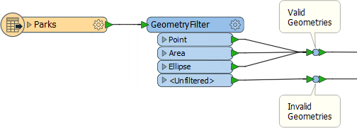 - Filtering out unwanted geometry types; for example, removing non-linear features before using an AreaBuilder transformer