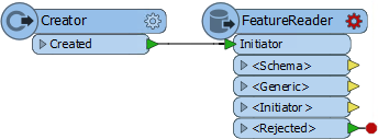 So place a Creator transformer and connect it to a FeatureReader:
