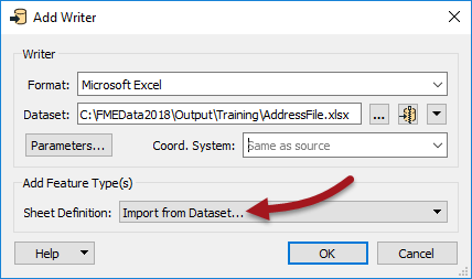 | Writer Dataset | C:\FMEData2018\Output\Training\AddressFile.xlsx |