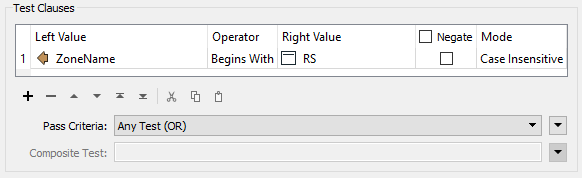 This Tester will be used to filter residential zones from the other zoning areas. All single-family residential zones will start with RS, so the Tester should be set up like this: