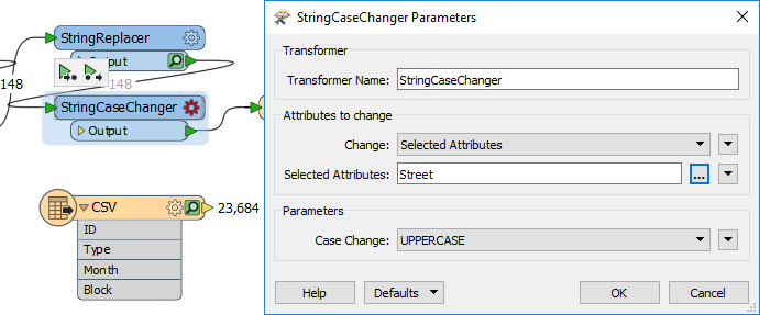 | So, answer me this. Why do we use the StringCaseChanger on the address data (to UPPERCASE) rather than changing the crime data (to TitleCase)? Do you know? |