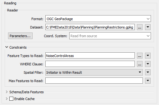 | Reader Dataset | C:\FMEData2018\Data\Planning\PlanningRestrictions.gpkg |