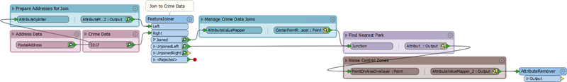 We'll try to improve performance by using a FeatureReader transformer to read this data, using the Addresses as a trigger; so place a FeatureReader transformer and connect it up to the AttributeRenamer.