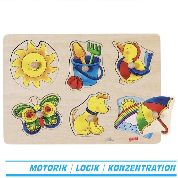Das Goki Steckpuzzle ist ein tolles Geschenk für alle kleinen Kinder ab 1 Jahr. Die ersten Puzzleversuche mit kindgerechten Motiven werden mit diesem Puzzle sicher zum Erfolg. Das Puzzle ist aus hochwertigem Holz gefertigt und somit sehr langlebig.