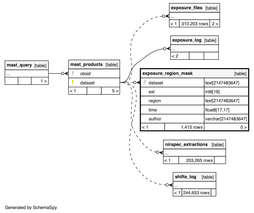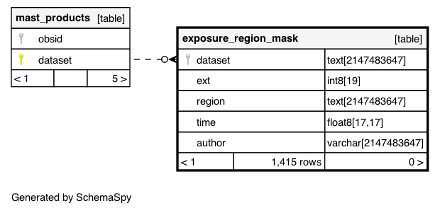 | Column | Type | Size | Nulls | Auto | Default | Children | Parents | Comments | |||
