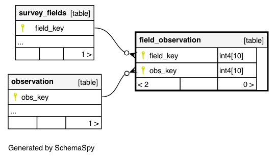 | field_observation_pkey | Primary key | Asc/Asc | field_key + obs_key |