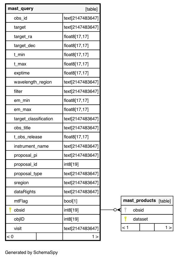 | mast_query_pk | Primary key | Asc | obsid |