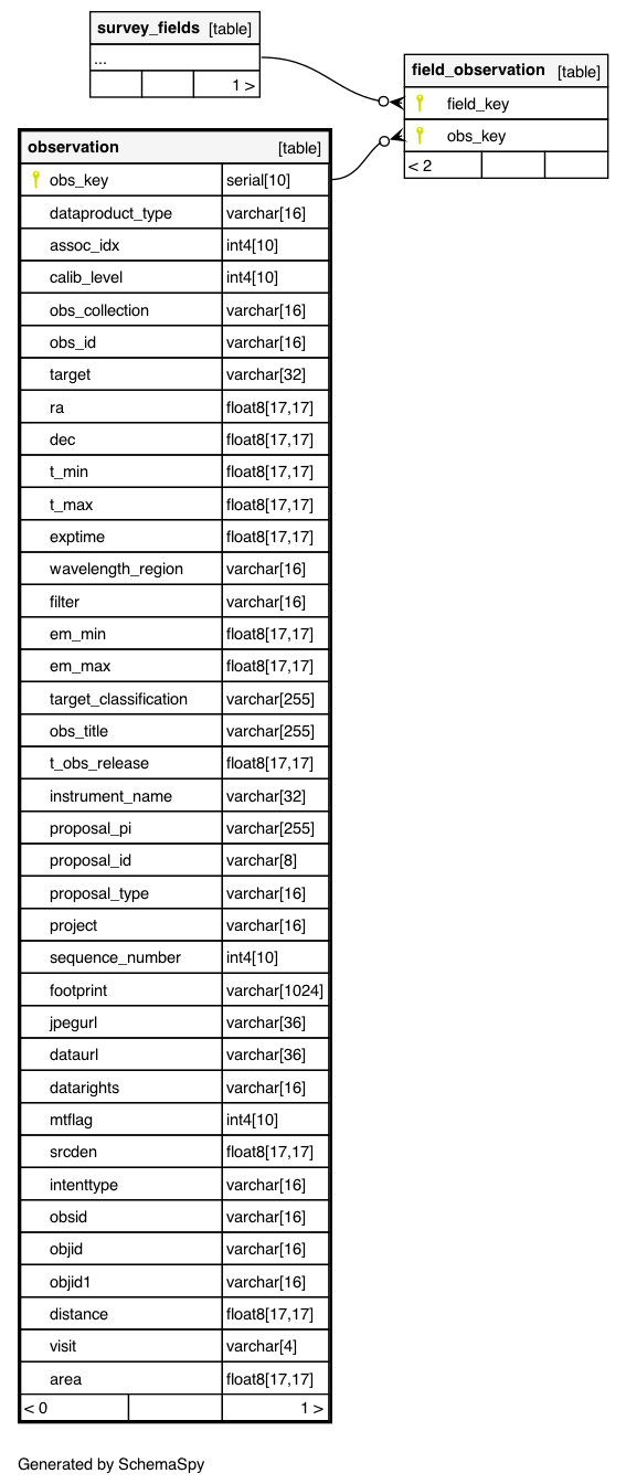 | observation_pkey | Primary key | Asc | obs_key |