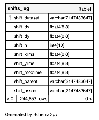 | Column | Type | Size | Nulls | Auto | Default | Children | Parents | Comments | |||