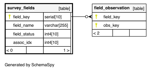 | survey_fields_pkey | Primary key | Asc | field_key |