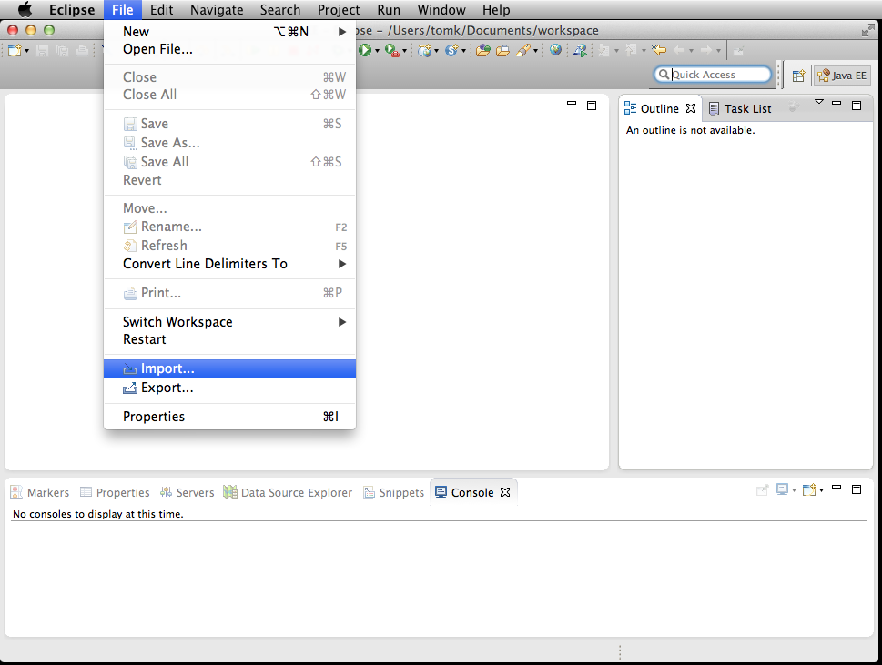 - Choose File->**Import**.