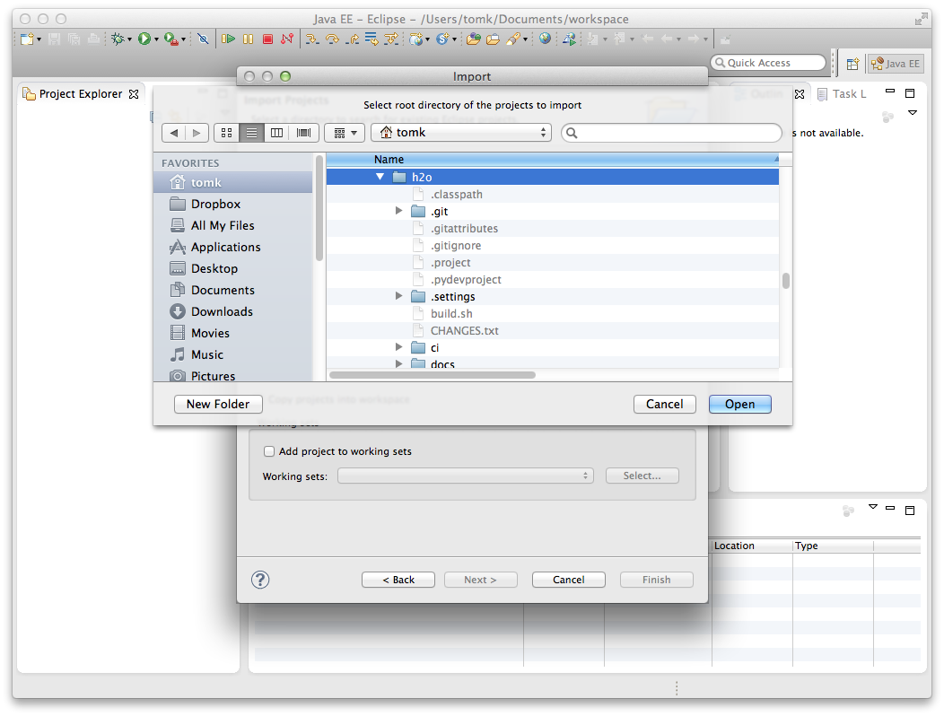 - The defaults should have the H2O project selected. Click Finish.