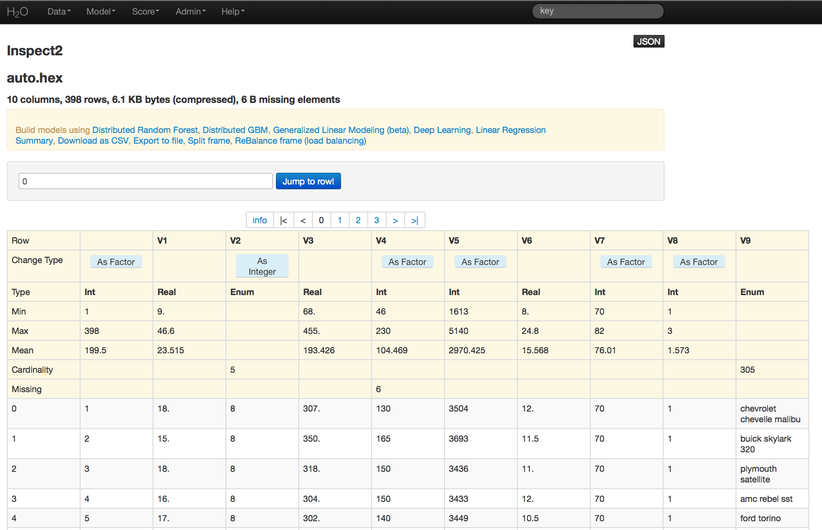 - To automatically move to a specified point in the data, enter an row index number and click the Jump to Row button.