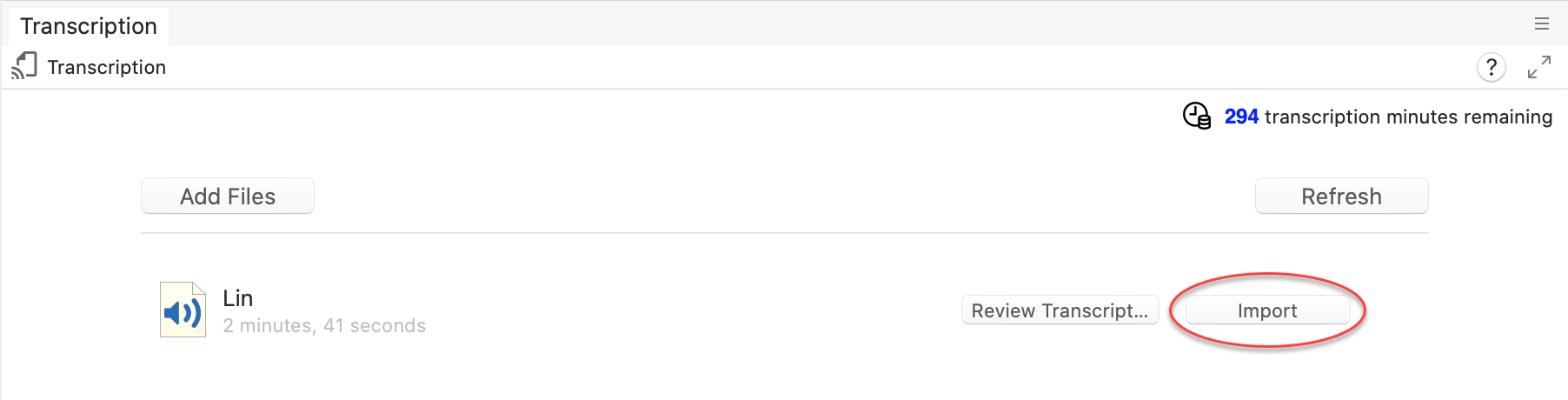 7. Return to the NVivo Transcription tab in NVivo and click Import.