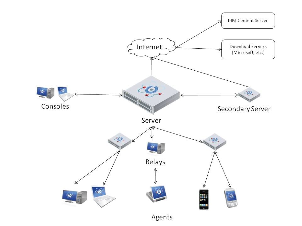 - It coordinates the flow of information to and from individual clients and stores the results in the database. It manages policy-based content and allows the operator to maintain real-time visibility and control over all devices in the environment. The content is delivered in messages that are called Fixlet and it is updated continuously using the Content Delivery cloud-based service. Because most of the analysis, processing, and enforcement work is done by the agent rather than the server, one server can support up to 250.000 endpoints. High availability is enabled by employing multiple servers.