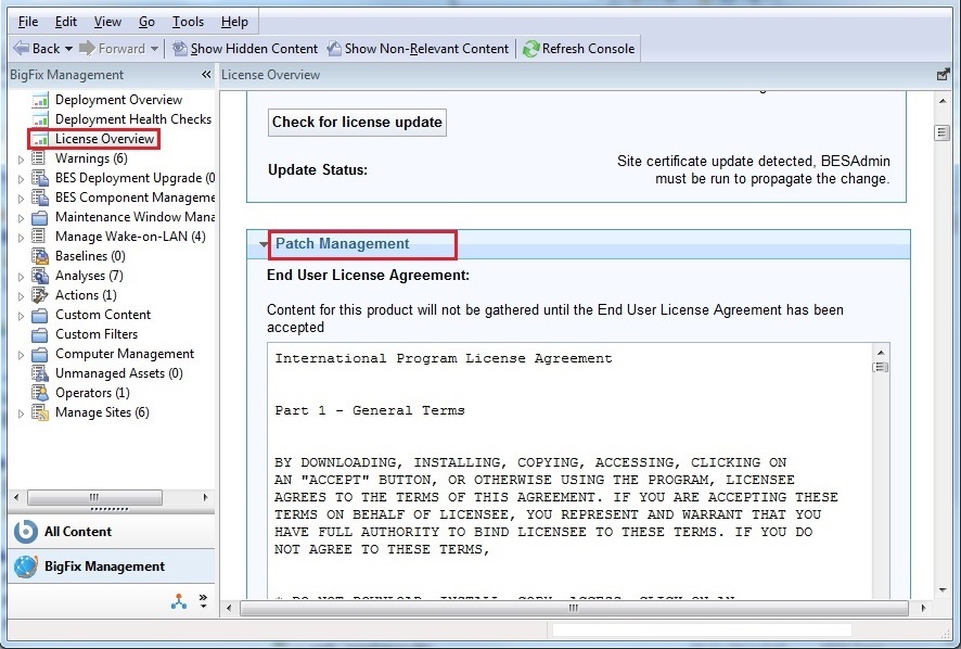 - Read and accept the Patch Management license agreement.