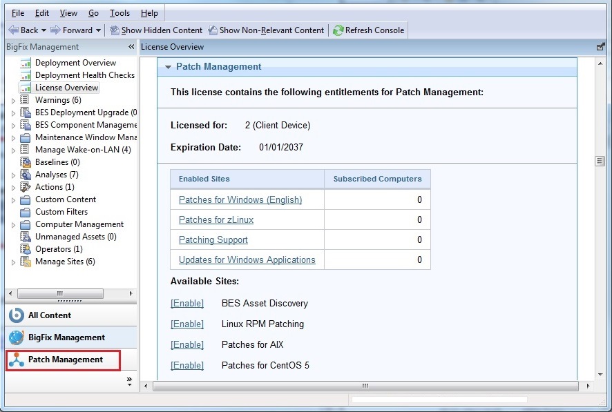 Follow the steps listed in these topics to learn how to deploy a patch using the Patch Management application on a newly installed BigFix server. All the steps are run from the BigFix console.