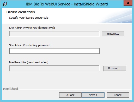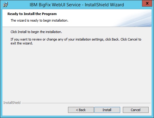 - Run the setup.exe file located in the BigFix Enterprise\BES Installers\WebUI\ directory to launch the InstallShield Wizard for the BigFix WebUI.