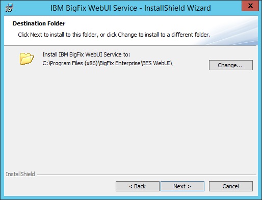 command. For more details about the command, see BESAdmin Windows Command Line. - Browse and select the WebUI installation folder, if different from the default folder.
