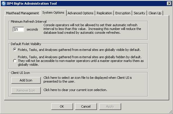 The first option sets a baseline minimum for refresh intervals. This refers to the Fixlet list refresh period specified in the Preferences dialog of the Console. The default period is 15 seconds, but if your network can handle the bandwidth, you can lower this number to make the Console more responsive. Conversely, if your network is strained, you might want to increase this minimum.